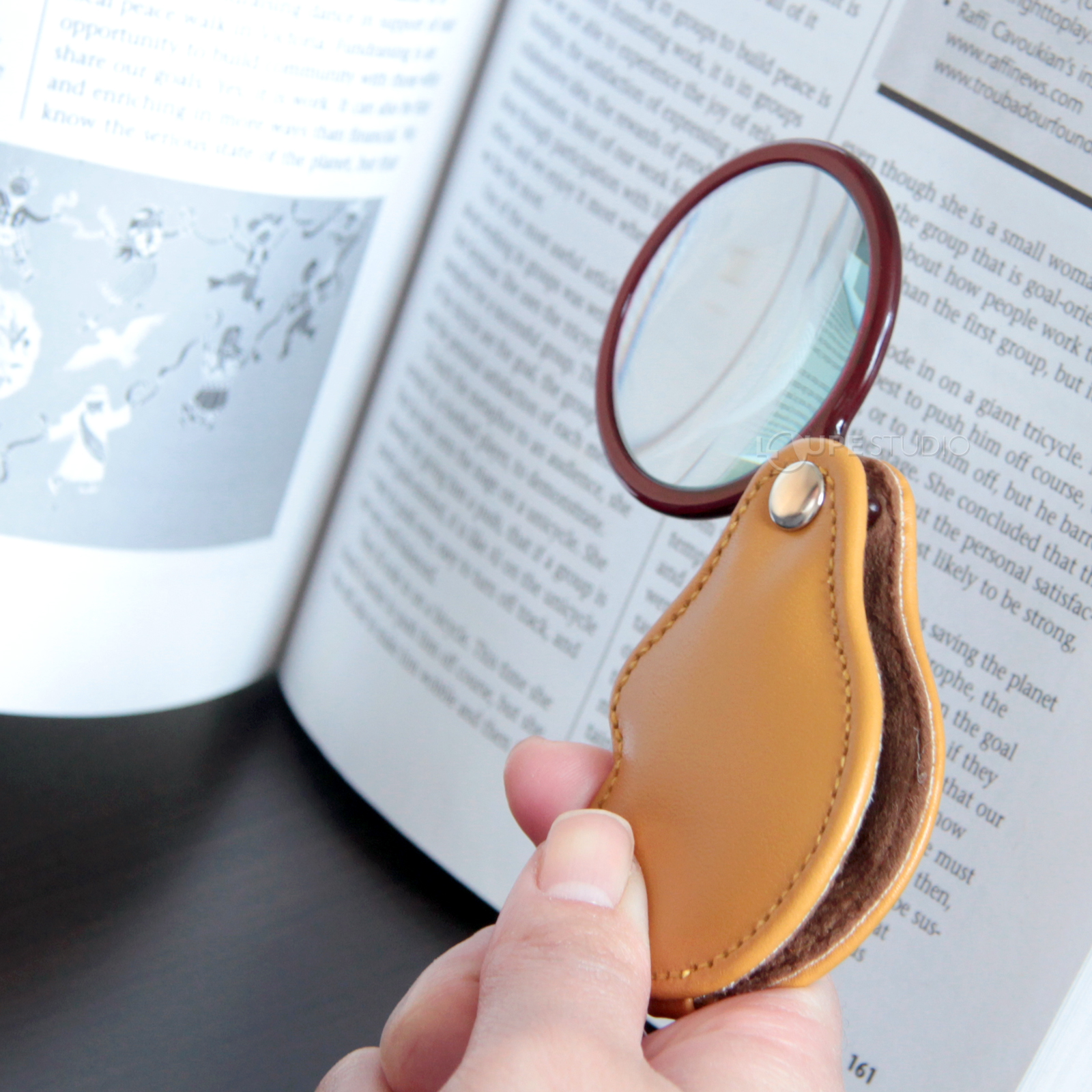 本革を使用した携帯用ルーペです。