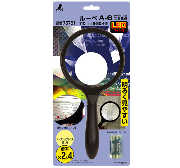 | 仕様 | ■レンズ倍率:2倍、4倍 ■レンズ径:110mm ■使用電池:単4乾電池2本(付属) ■使用電球:LED |