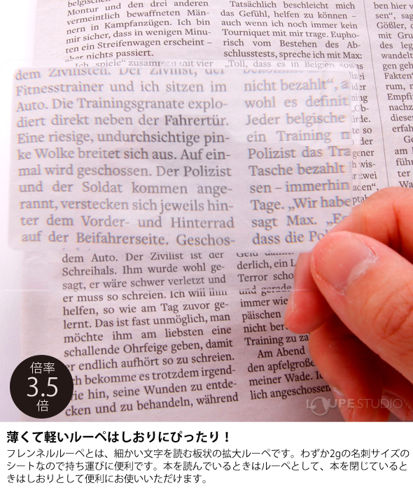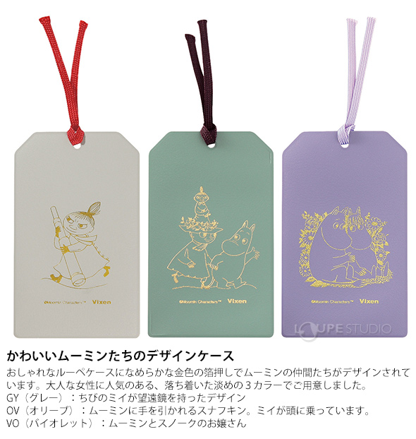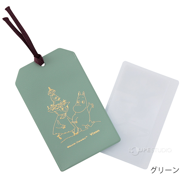 わずか2gのカードタイプのルーペと、ムーミンの仲間たちがあしらわれたケースのセットです。しおりとしても使いやすいデザイン。